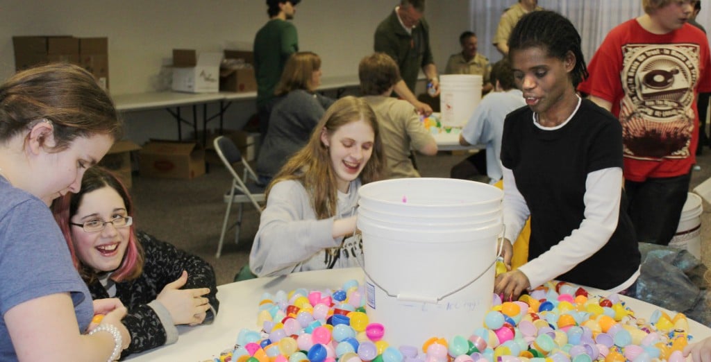Throw together 10,000 colorful plastic Easter eggs, 250 pounds of candy, 17 pizzas and more than 40 kids and you’ve got the makings for 2 1/2 hours of hard work, with lots of fun and laughter thrown in along the way.