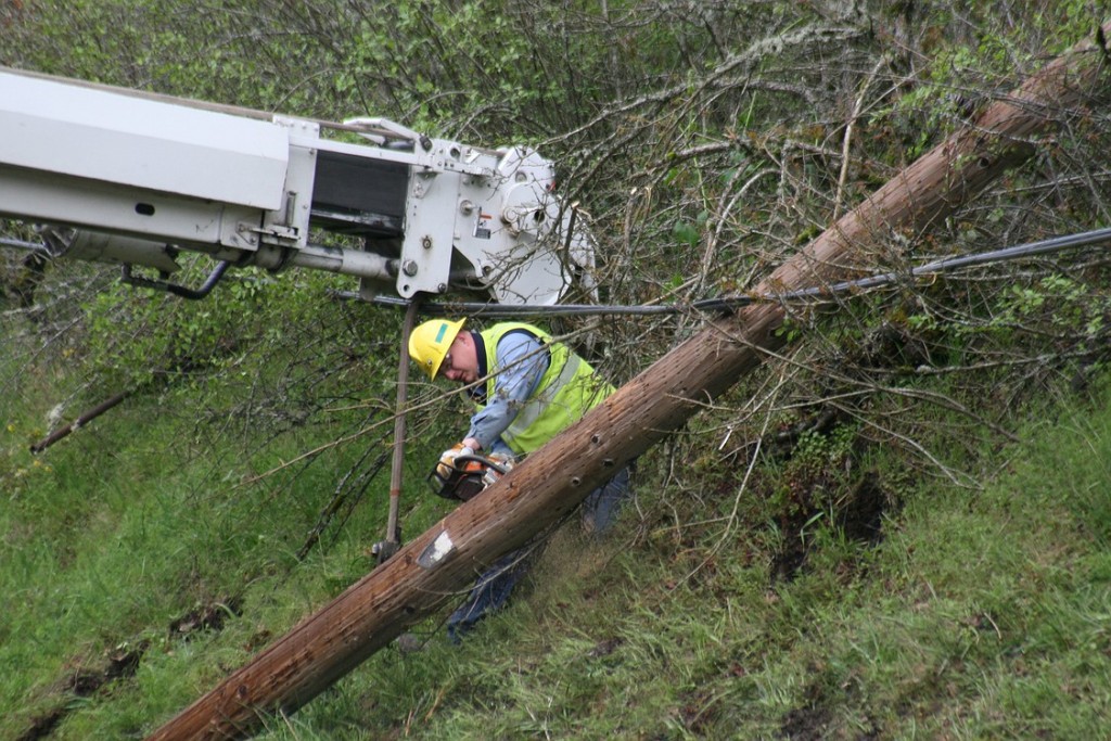 Sparks crackled and popped when truck driver Benjamin Chandler, of Carson, struck a telephone pole at Milepost 21 April 9, while traveling westbound on State Route 14.