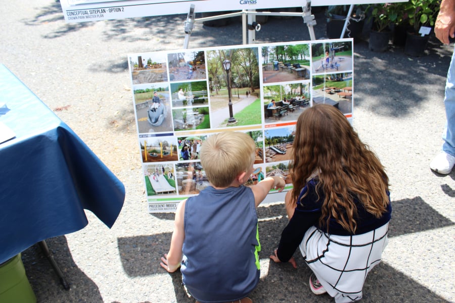Visitors to the city of Camas’ booth at last weekend’s Camas Days celebration may have noticed two giant illustration boards depicting very different options for the future of Camas’ popular but aging Crown Park and Pool.
