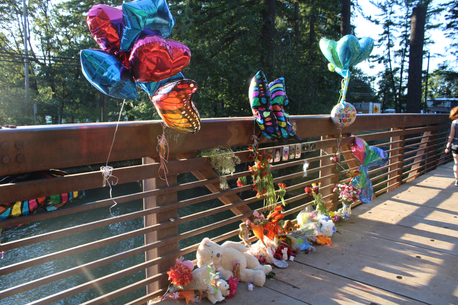 Friends and family of Anthony Huynh have created two memorials on and near the Camas pedestrian bridge spanning Lacamas Lake.