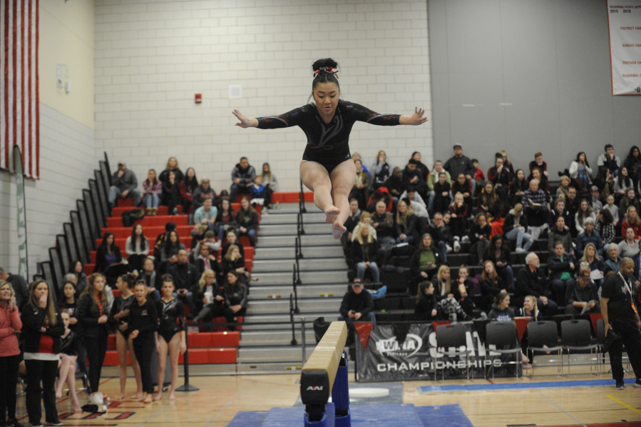 In addition to the team win, with a third-best state score of 184.825, Camas also dominated the individual all-around competition with sophomore Shea McGee winning top honors with her score of 31.75.