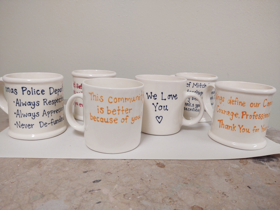 A months-long collaboration between the Camas community and a Vancouver ceramics studio will soon deliver dozens of personalized mugs to Camas Police Department officers and staff.