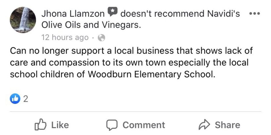 The negative reviews started appearing on the Navidi’s Olive Oils and Vinegars online sites on Friday, Jan. 24.